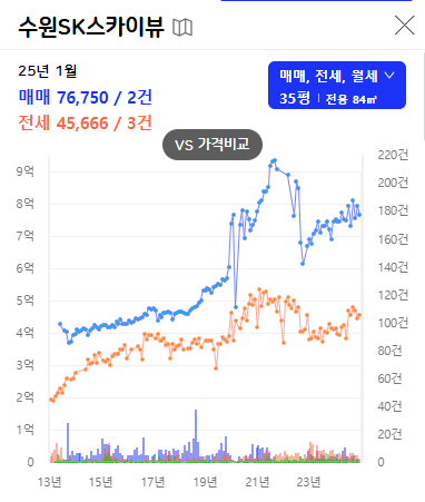 나의 첫 임장 도전 후기. 경기도 거주지로 현재 1순위 고민중인 수원시에서도 일단 서울과 가장 근접하다고 할 수 있는 (제일 북쪽이니까..?) 북수원 지역을 타겟으로 정했다. 그중에서도 대장격인 수원SK스카이뷰, 그리고 그 옆에 작년인 24년 3월에 준공된 북수원자이 렉스비아를 뚜벅이답게 열심히 걸어서 돌아다녀봤다.